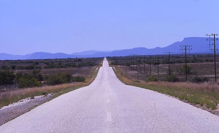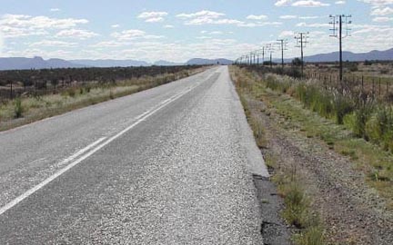 Telegrafenmasten am Straßenrand, der kargen, unendlich weiten