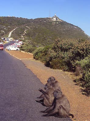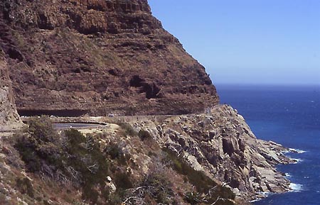 | Meine Rundfahrt starte ich in Kapstadt. Im Häuserdschungel bereitet es überhaupt keine Mühe sich mit der GS seinen Weg zu bahnen und schon liegt die Stadt hinter einem. Vorbei an der Waterfront schlängelt sich die Küstenstraße über den einzigartigen "Chapmans Peak Drive" zum "Cape of Good Hope". Dieser Ausflug gehört zum Pflichtprogramm einer Südafrika Reise, auch wenn es von Touristen aus aller Herren Länder hier nur so wimmelt. |