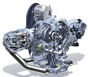 Das eigentliche Highlight ist allerdings die Ausgleichswelle, die den Motor nun fast vibrationsfrei, ohne jedoch die typische BMW-Boxer-Charakteristik zu verwässern, laufen lässt. Auch die Diät kann sich sehen lassen, das Kraftpaket ist gut drei Kilo leichter als der R 1150 GS-Motor. Konsequenter Leichtbau bei Anlasser, Lichtmaschine und Batterie sparen nochmals zwei Kilo. |