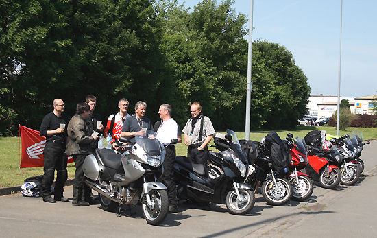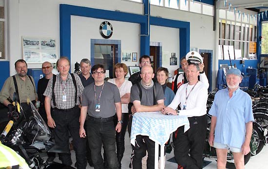 mit seiner klassischen Boxer-BMW R69S zu der Begrüßung gekommen.