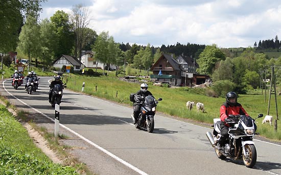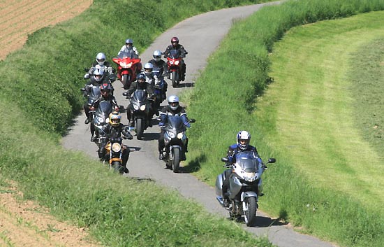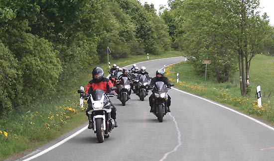 geschoben. Motorradfahrer, die in Gruppe unterwegs sind, möchten gerne