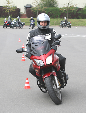 eines Motorrades beim Bremsen in Schräglage gehört zum Trainingsprogramm.