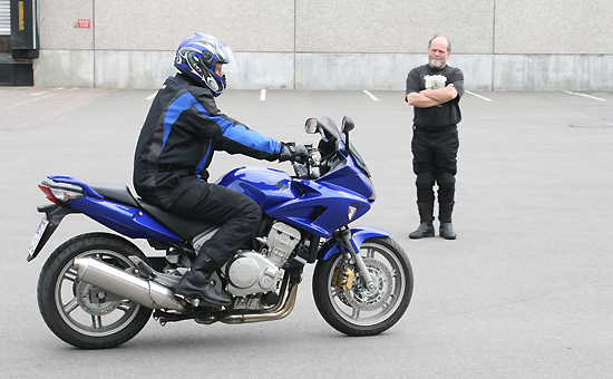 Motorradseele. Winni als Instruktor lässt jeden Teilnehmer einzeln