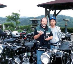 uns Motorrad fährt. Sanada Terufumi zeigt ein Bild von seinem