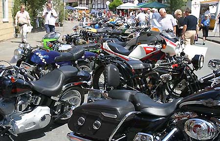 Motorrädern stehen, man erinnerte sich an sein erstes Motorrad, aber